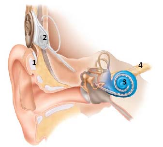 A cochlear implant is an electronic device that restores partial hearing to individuals with severe to profound hearing loss who do not benefit from a conventional hearing aid. It is surgically implanted in the inner ear and activated by a device worn outside the ear. Unlike a hearing aid, it does not make sound louder or clearer. Instead, the device bypasses damaged parts of the auditory system and directly stimulates the nerve of hearing, allowing individuals who are profoundly hearing impaired to receive sound.